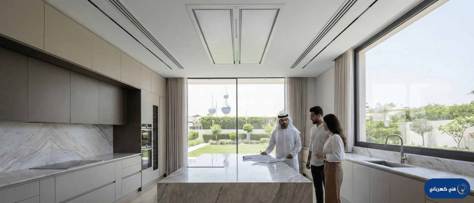 في الفلل والقصور، المطبخ هو جوهرة المنزل. التهوية هنا يجب أن تكون قوية بما يكفي لقلي السمك، ولكن أنيقة بما يكفي لحفلات الاستقبال.