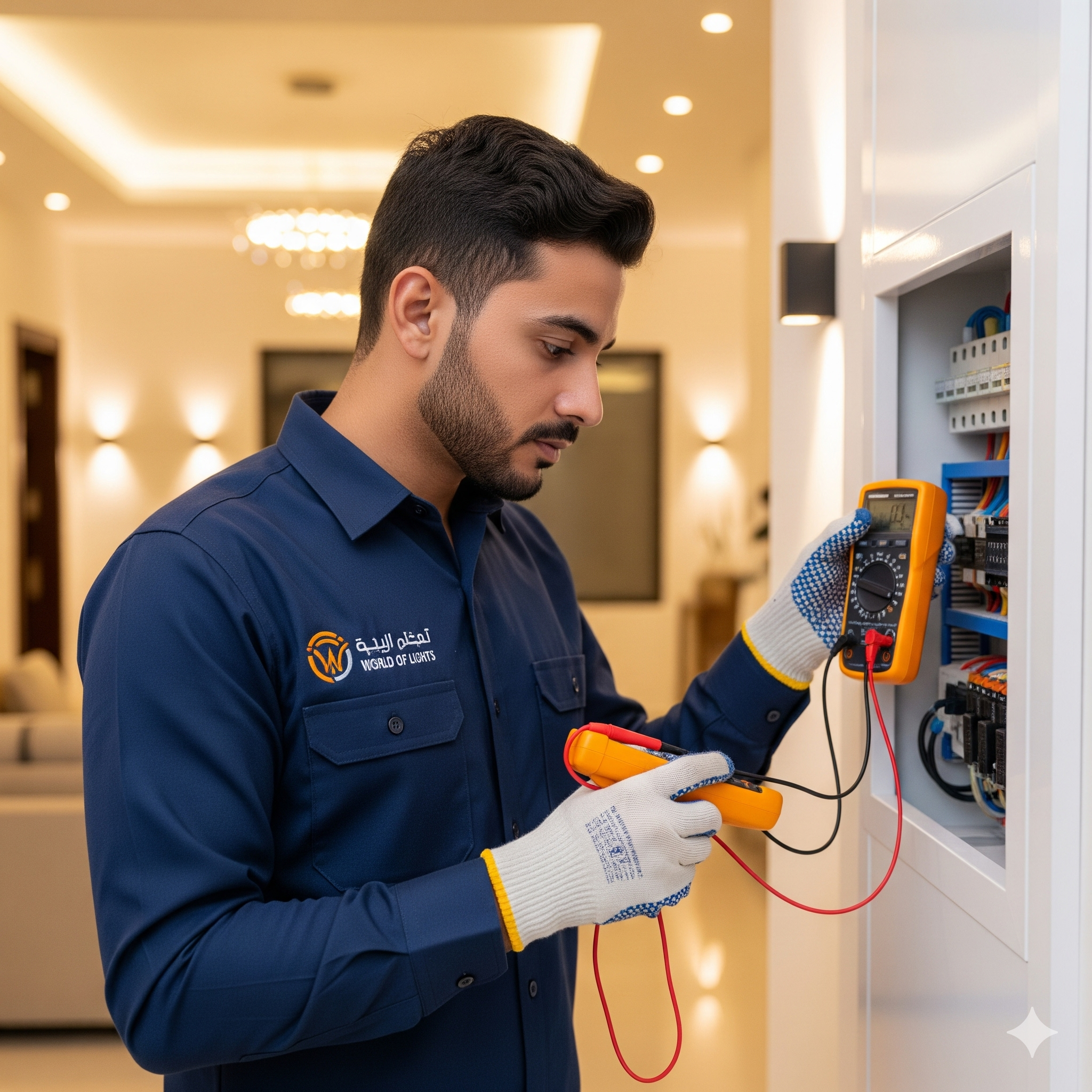 لماذا تنتظر حدوث العطل؟ “عالم الأضواء” يقدم خدمات صيانة كهرباء الصديق الدورية للمنازل والشركات. الفحص الدوري هو استثمار ذكي يجنبك الأعطال المفاجئة والتكاليف الباهظة.